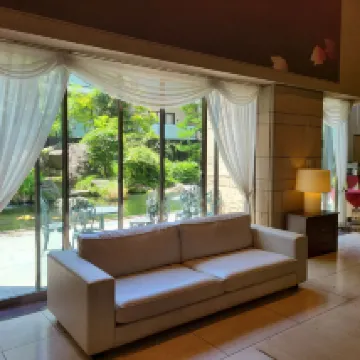 The location was great, just a 5 minute walk from Meguro station. As the name "Garden" suggests, there is a small but splendid courtyard where you can relax while watching the koi swimming. The building was very old and the beds were low and uncomfortable, but it was clean.