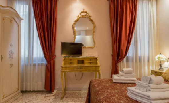 We booked a room with a private bathroom, but before our arrival, we were told we’d have to share a bathroom unless we paid an extra $80 cash to upgrade. They tried to blame it on *******, but after reading other reviews, it’s clear they’ve done this to many guests. When we arrived, we waited 15 minutes outside for the host, who barely spoke English and was difficult to communicate with. Once he finally let us in, he charged us $105 cash for “taxes.” We were promised a balcony with a canal view — but the room had no view at all. The room itself was tiny, the bed squeaky and uncomfortable, and the pillows and blankets were terrible. To make things worse, there was a fire alarm chirping every 30 seconds due to a dead battery right outside our door. Both mornings we woke up with bug bites, and when we arrived, the AC was turned off, making the room extremely hot. It took all day to cool down since it was on the third floor. Overall, this was one of the worst stays we’ve ever had. Would not recommend.