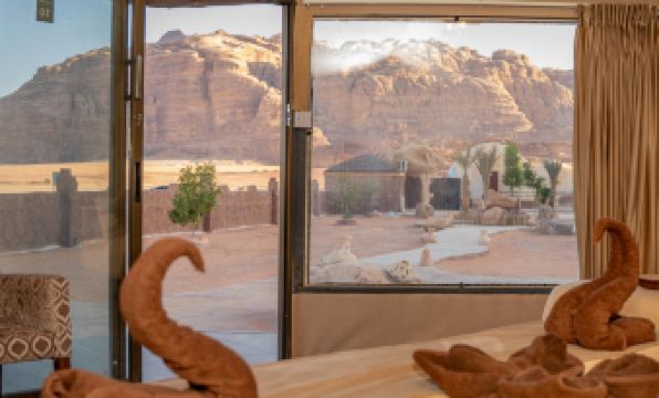 Location & Atmosphere: Situated in Wadi Rum, offering immersive desert experiences with panoramic views, serene settings, and traditional Bedouin ambiance .