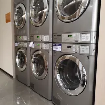 The laundry room is at the 3rd floor. The washing machine and dryer is easy to use. Two steam irons are available for using.
