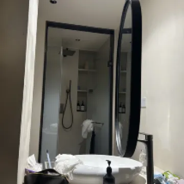 Facilities: A bit strange, the mirror is facing the wall, not people, just like in the picture.