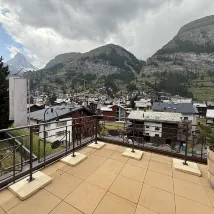 The room has a direct view of the mountains. You can see the Matterhorn from the terrace and the room is very large