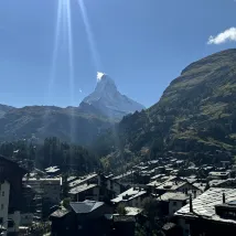 The hotel is in a great location. The corner rooms offer a panoramic view of the Matterhorn from both indoors and on the balcony! A shuttle bus is provided from the train station to the hotel, but it is not far to walk there.