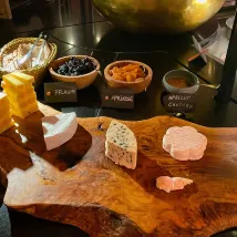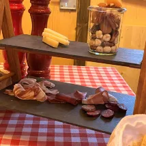A feature of the hotel: the cheese hot pot cabin! Reservations are required, with a separate space, and the Matterhorn view is just outside the cabin. The cabin is small and warm, with music and dedicated service. The set meal is 75 Swiss francs per person, with pickled meat cold cuts, nuts, and three kinds of mixed cheese hot pot ingredients all from the local area, and the final dessert is also very exquisite. Overall value for money!