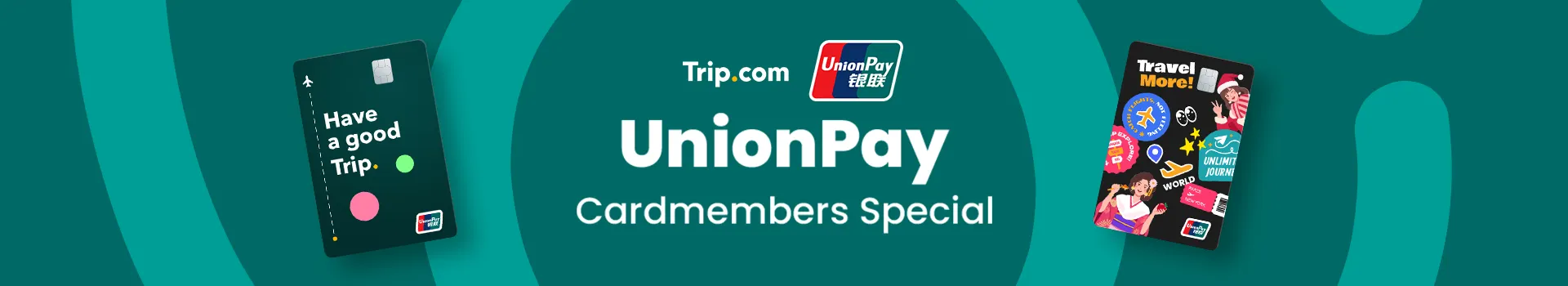 Planning your next getaway from Singapore is now even more rewarding. As a UnionPay cardholder, you get access to exclusive travel deals right here on Trip.com. We make it simple to turn your travel dreams into reality with significant savings.