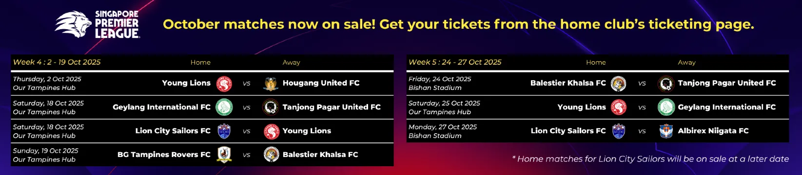 Securing your Singapore Premier League tickets is the first step to supporting your favourite club and witnessing the passion of the game live.
