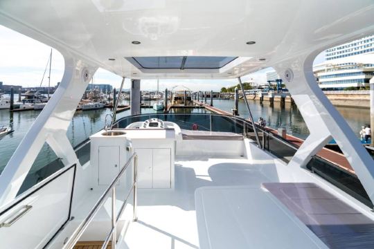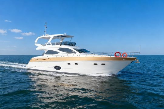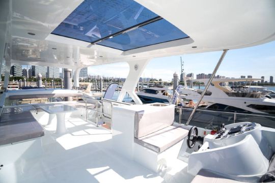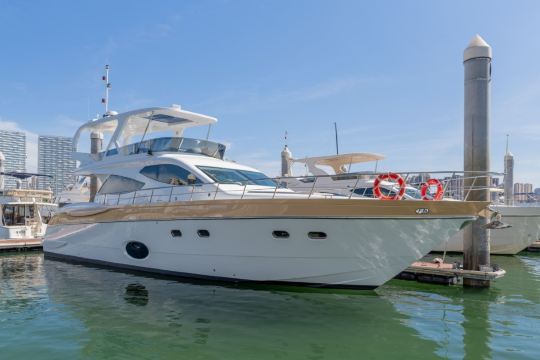 Experience the Kaidafeng 63-foot luxury tri-deck yacht, with a flybridge on the top deck for watching waves, a mid-deck living room for family and friends to gather, and a lower-deck bedroom for quiet privacy.
