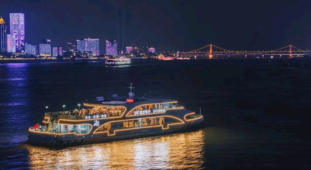 - The cruise sails along the Yangtze River, with its illuminated hull tracing graceful lines against the water. The dazzling light shows from skyscrapers on both banks perfectly showcase Wuhan's vibrant nightlife and the gentle beauty of its riverscape.