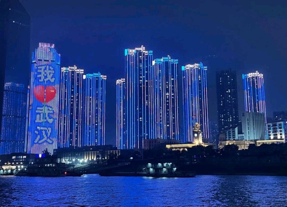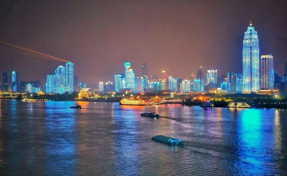 - The night view of the high-rise buildings along Hankou Riverside features a dominant blue lighting scheme, creating a cultural highlight for Yangtze River night cruises.