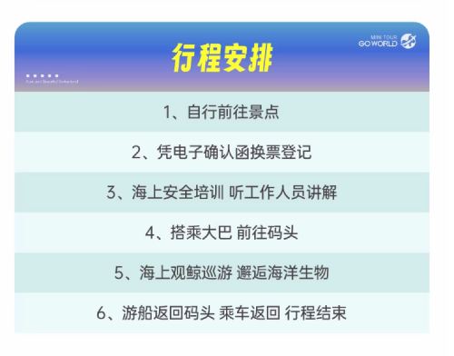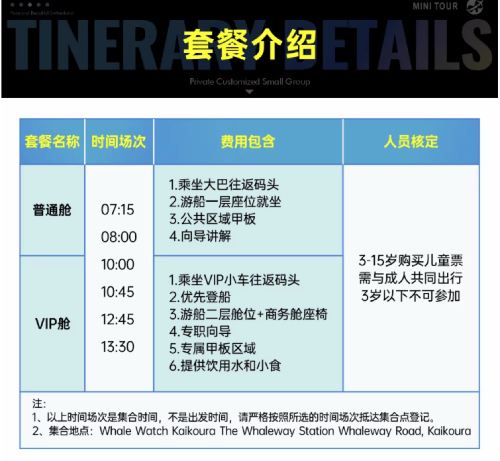 1: The booked time is the ticket redemption time at the whale watching office, not the departure time. Please arrive on time according to the booked time, no need to arrive early. The departure time is 30 min after ticket redemption.