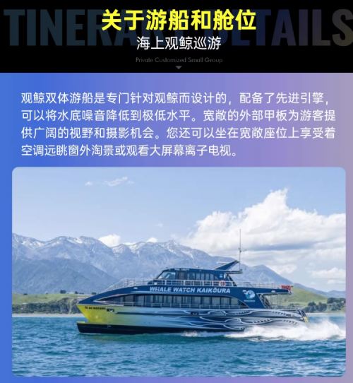 Lower deck with 104 seats, upper deck with 12 seats; the vessel is 23.9 meters long and 9.2 meters wide. The whale watching tour boat is enclosed. If you wish to observe marine animals outside the cabin, please bring warm clothing.