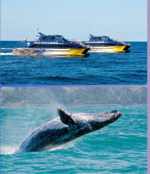 A: The main attraction is sperm whales. Since sperm whales may dive deep during the tour, we typically spot whales 1-2 times per trip. In Kaikoura, sperm whales surface every 40-60 min. Most sperm whales seen along our coastline are males. They form loose groups, usually staying miles apart, so spotting 1-2 sperm whales per trip is considered very lucky. Nearly 80% of the world's whale and dolphin species migrate past our coastline, offering year-round opportunities to see other marine animals like blue whales, fin whales, sei whales, humpback whales, minke whales, pilot whales, orcas, southern right whales, common dolphins, bottlenose dolphins, southern right whale dolphins, elephant seals, and leopard seals.