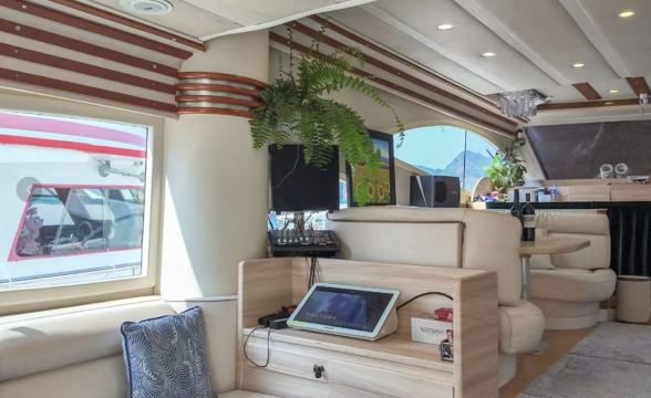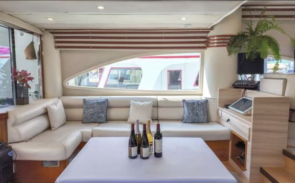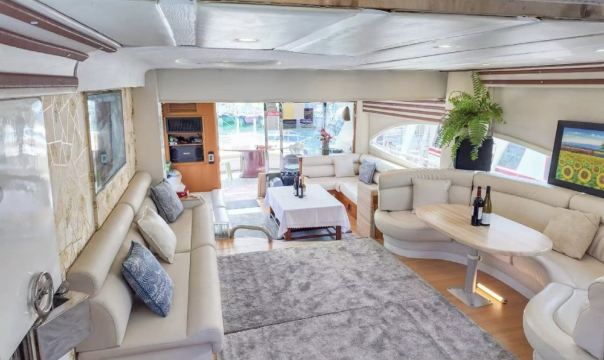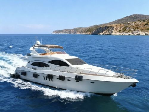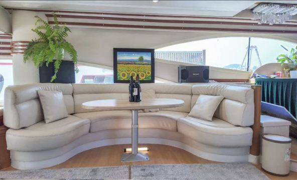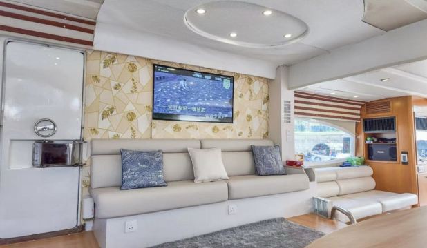This 82-foot Italian Azimut luxury imported yacht adapts to diverse activity scenarios. The outdoor deck features a leisure sofa and dining table, while the interior is equipped with air conditioning and entertainment facilities. Perfect for family luxury trips, friend gatherings, or business banquets, it departs from the urban pier, effortlessly offering a stylish and relaxing maritime experience.