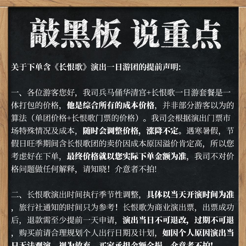 3. "Discount Policy": The "Song of Everlasting Sorrow" is a commercial performance, and tickets cannot be refunded after purchase! Children under 1.3m can enter for free. No other discounts are available. We appreciate your understanding!