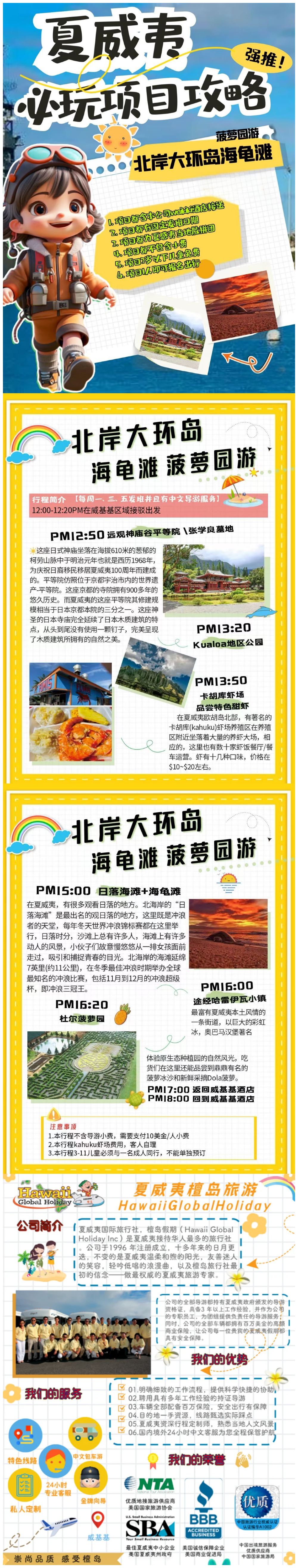 Free round-trip transfer from/to Waikiki area hotels with Chinese-speaking guide service throughout the tour for a worry-free experience