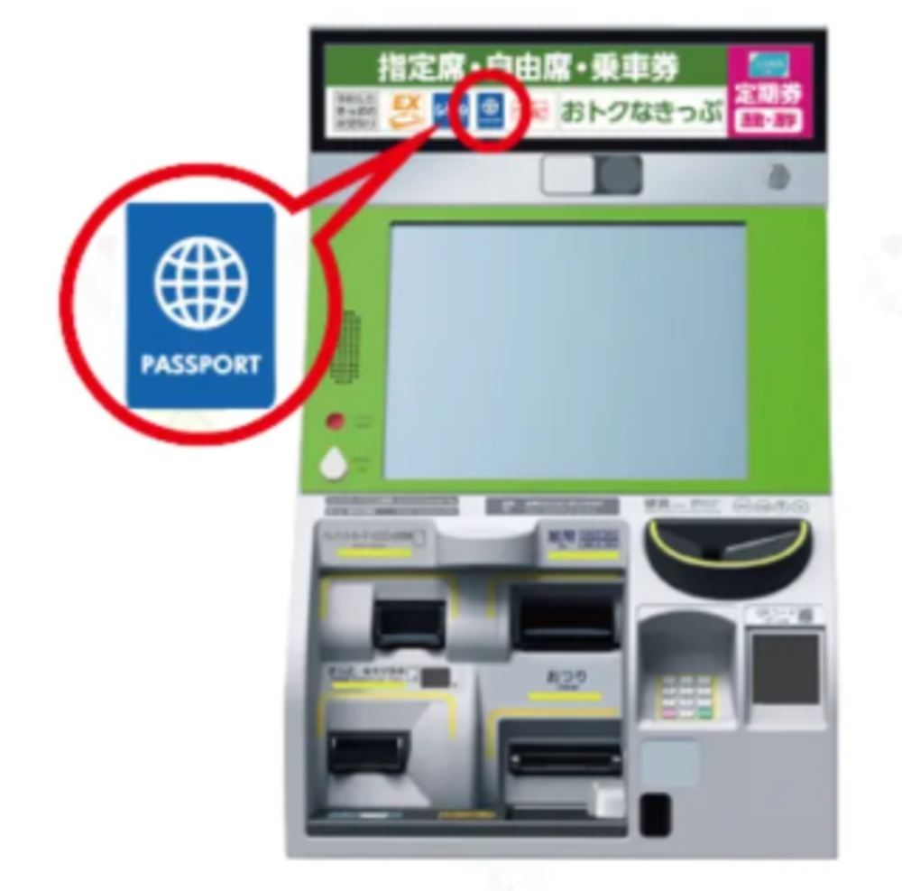 Please present the received confirmation slip and the non-Japanese passport of the booker at designated stations' ticket vending machines (green machines) or counters (green window counters) to exchange for a physical ticket.