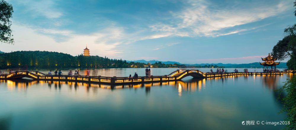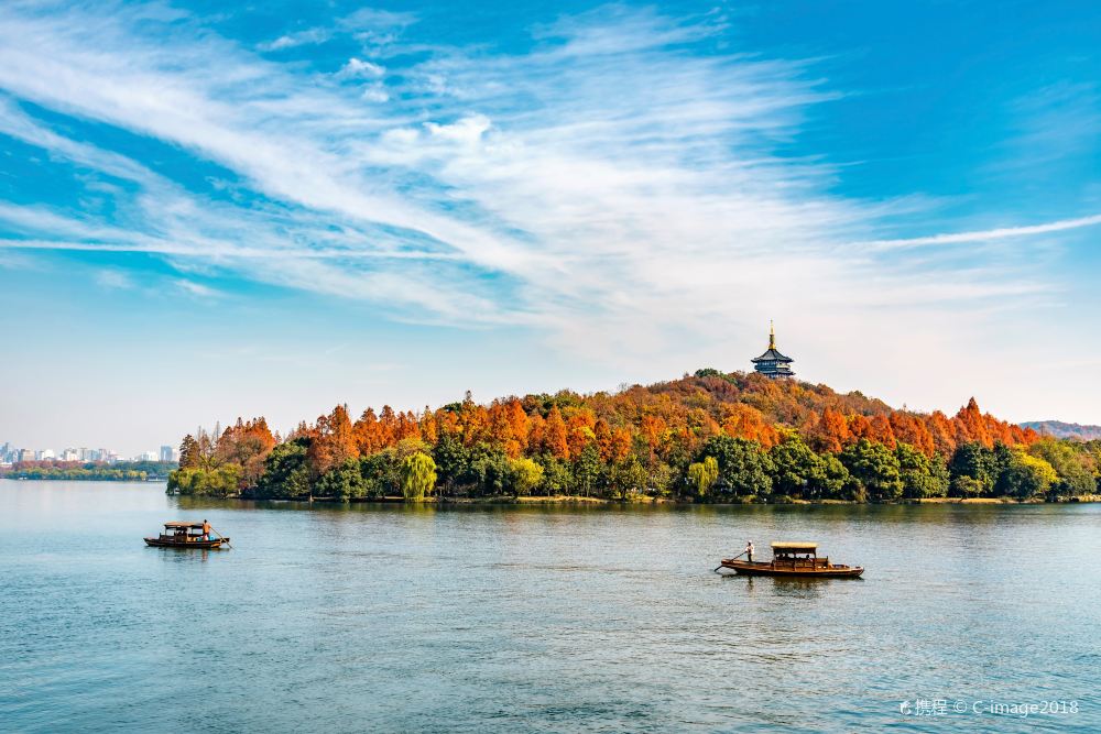 The iconic landmark of West Lake, where the historic Leifeng Tower in the south and Baochu Pagoda in the north stand facing each other across the lake.