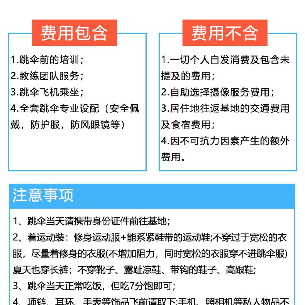 6. It is recommended not to consume excessive alcohol the night before skydiving and avoid eating too much before the activity. Skydiving is not allowed within 24 hours after diving. Pregnant women, individuals with a history of heart or brain diseases, severe hypertension, or other special conditions cannot participate in skydiving activities. If feeling unwell during the activity, please inform the instructor immediately.
