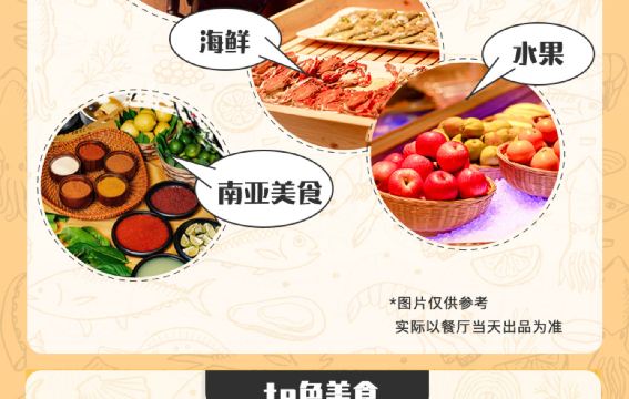 1. This product is for the breakfast, lunch, and dinner buffet at the Sailor Buffet Restaurant in Zhuhai Chimelong Spaceship Hotel. Please select your preferred restaurant and dining time when placing your order.