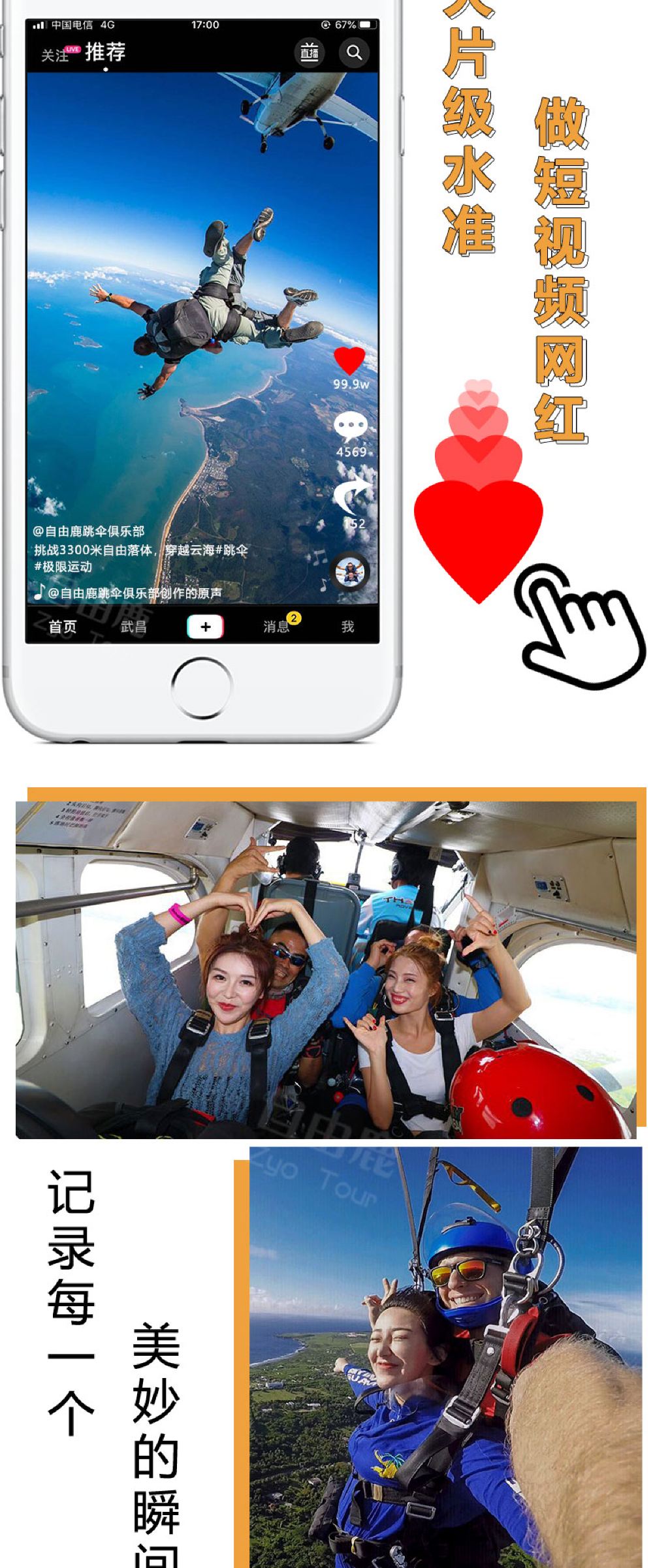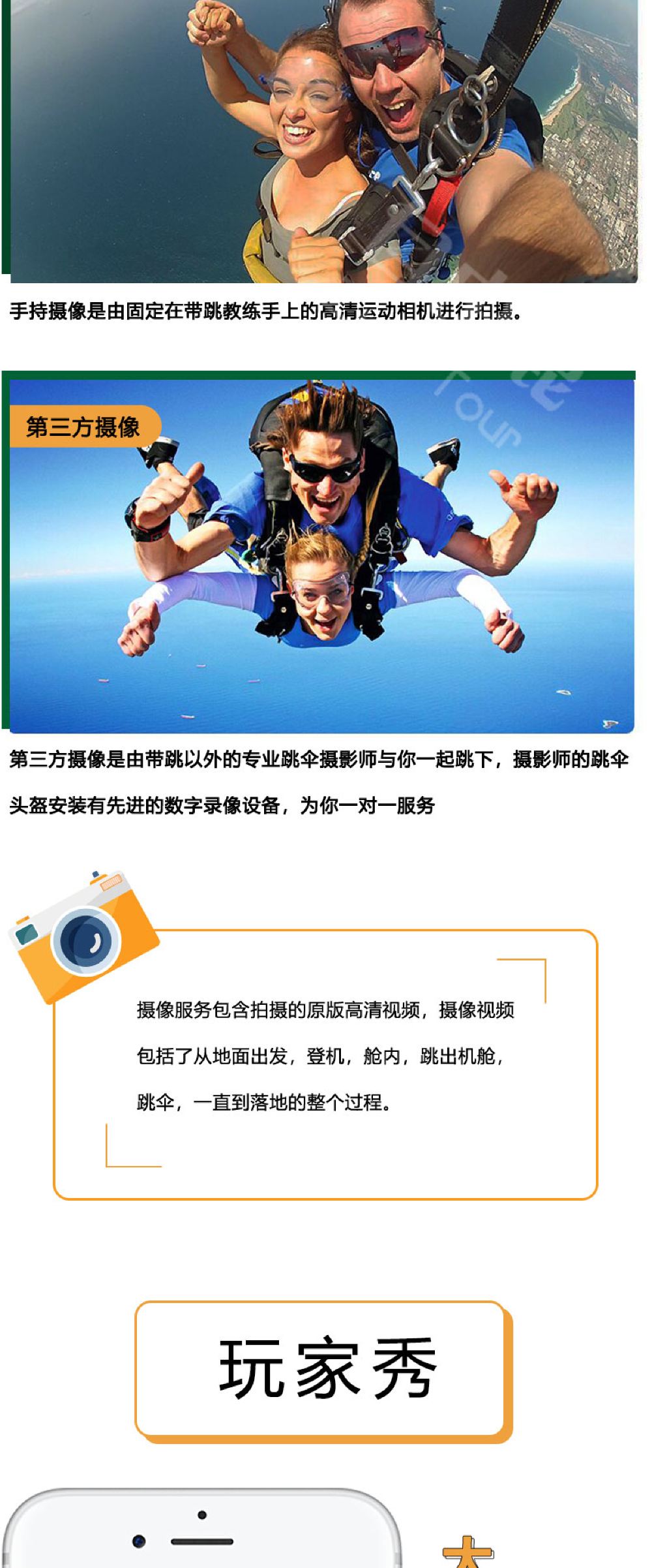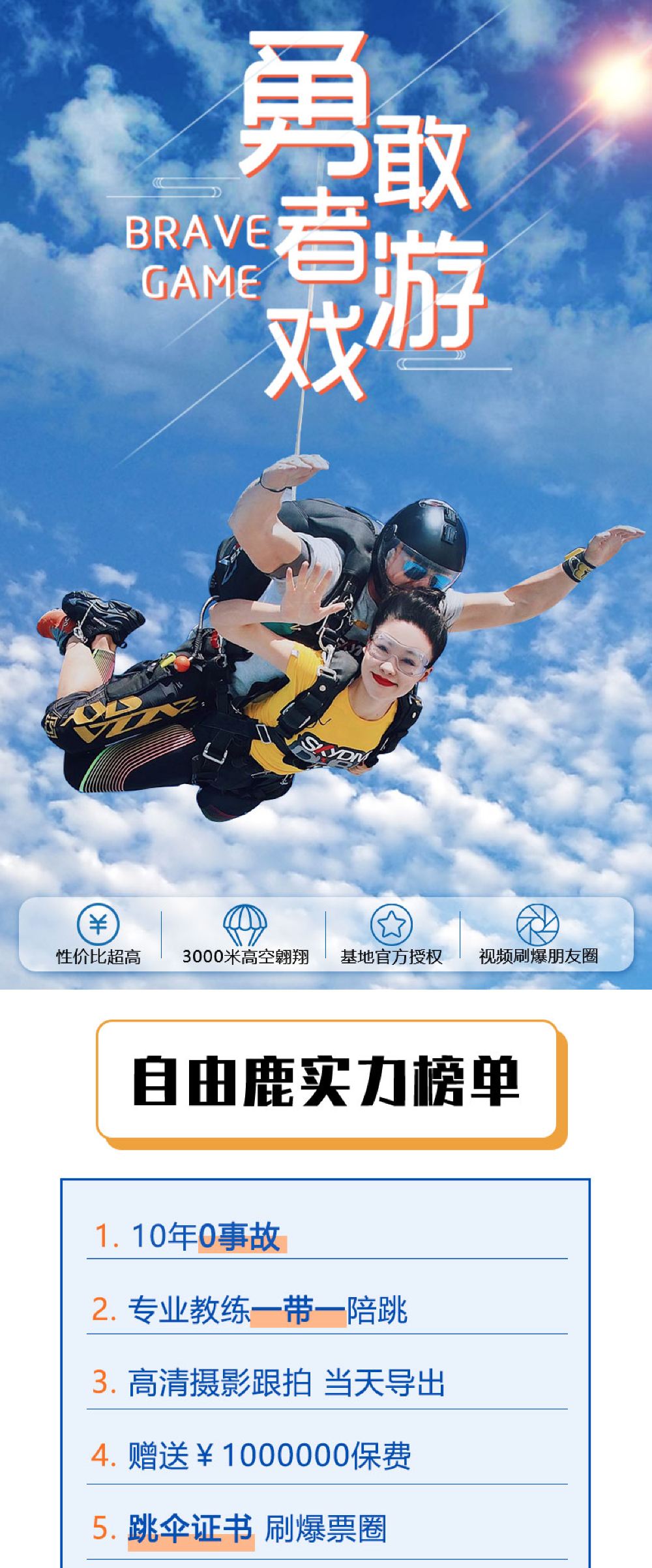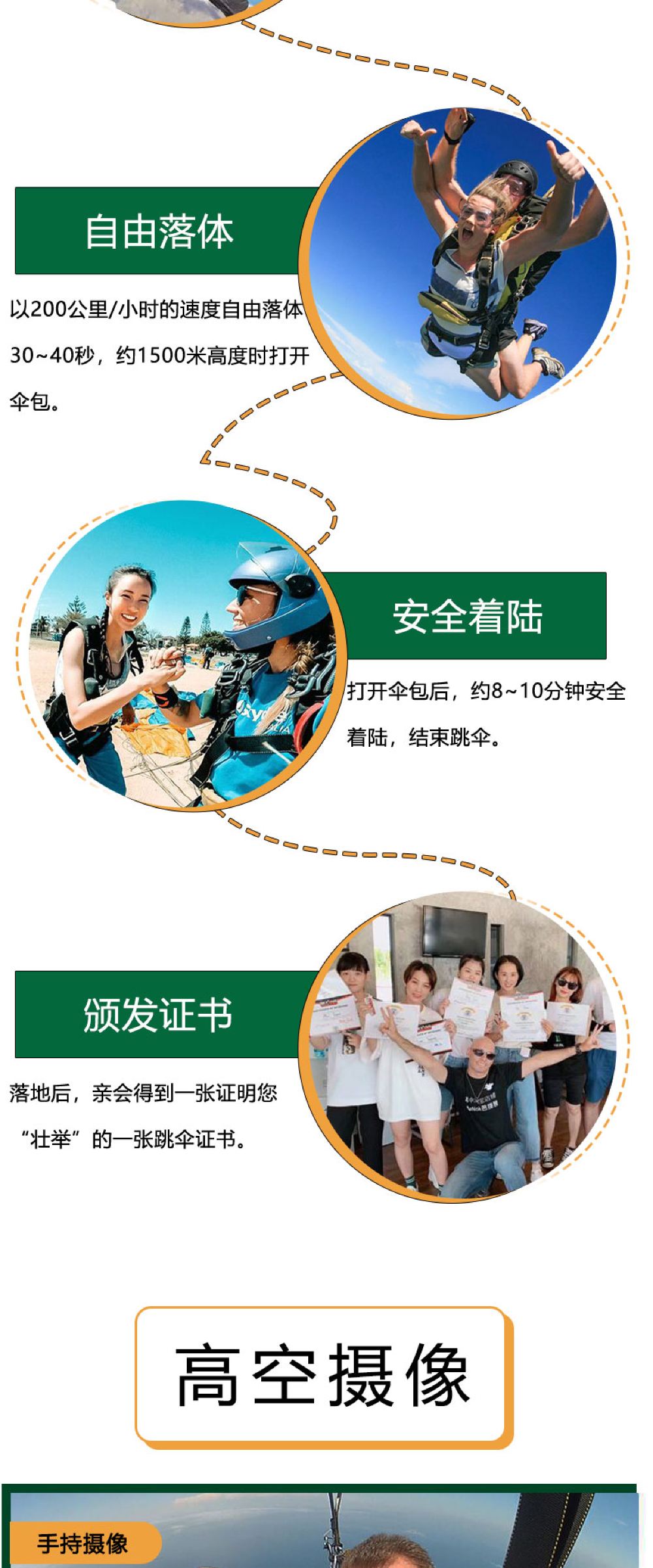 6. It is recommended not to consume excessive alcohol the night before skydiving and avoid eating too much before the activity. Skydiving is not allowed within 24 hours after diving. Pregnant women, individuals with a history of heart or brain diseases, severe hypertension, or other special conditions cannot participate in skydiving activities. If feeling unwell during the activity, please inform the instructor immediately.
