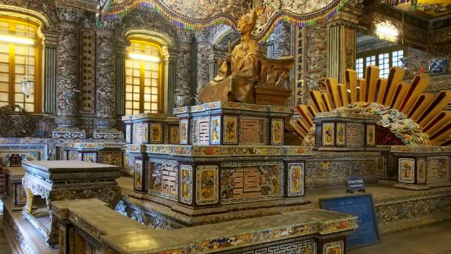 ▲ Khai Dinh Tomb is a unique blend of Eastern and Western architecture, built for Vietnam's 12th emperor. Perched on a hillside near Hue, the tomb features intricate mosaics, elaborate carvings, and a majestic royal temple showcasing a fusion of Vietnamese and French influences.