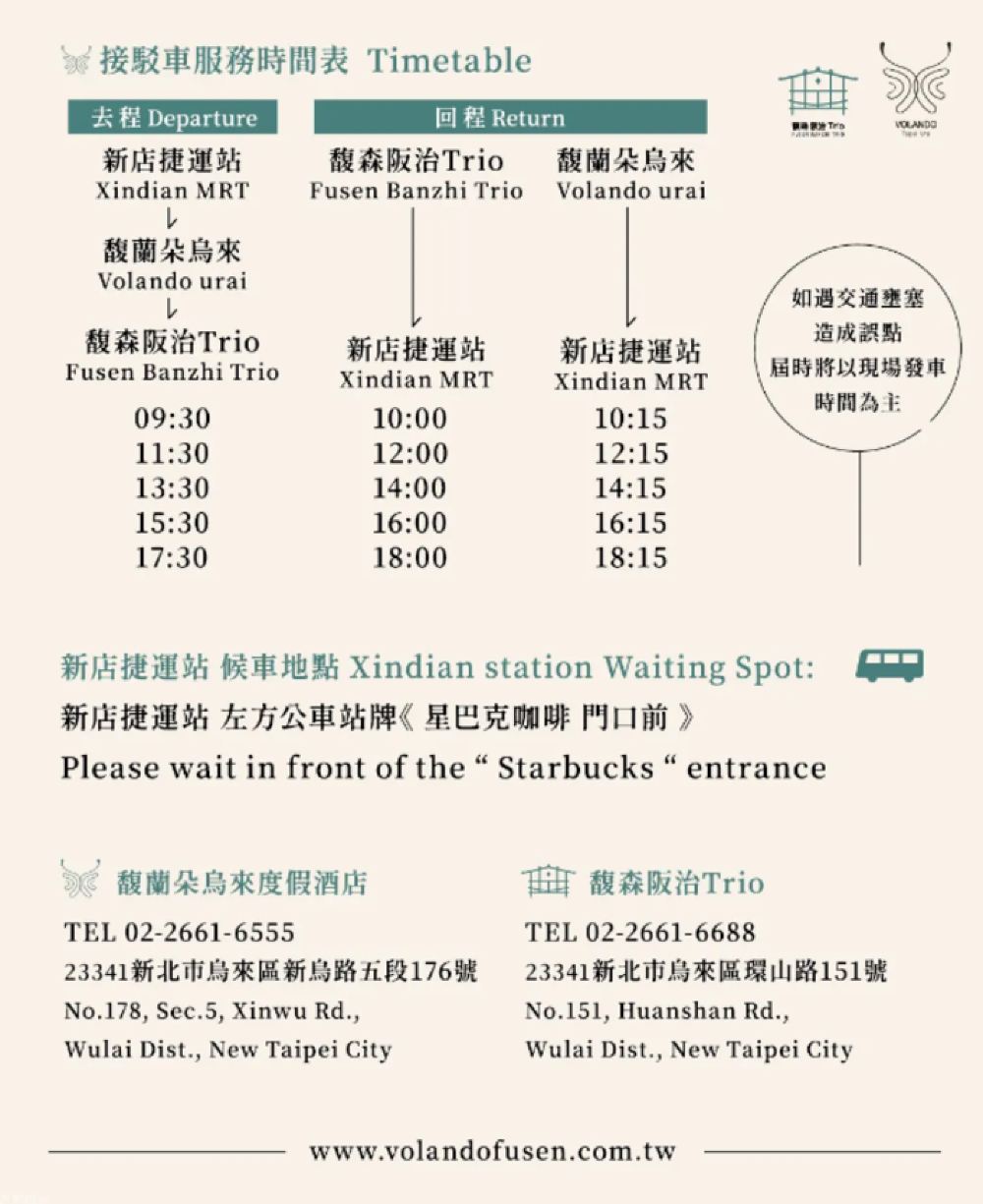] or [Phone reservation] Contact: +886 2 2661 6555- Itinerary -