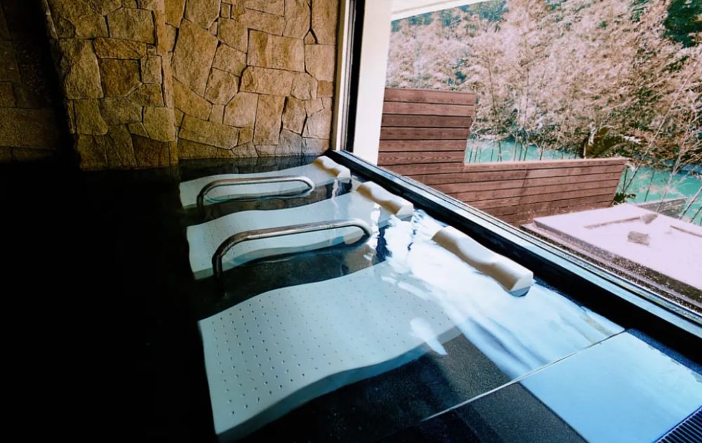 The spring water is clean and clear, even drinkable directly, with natural weak alkalinity that provides excellent soothing effects.