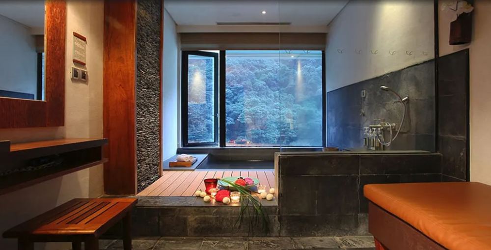 The view hot spring room offers a private and tranquil space with a natural stone bathroom, allowing you to relax and unwind while relieving all your fatigue.