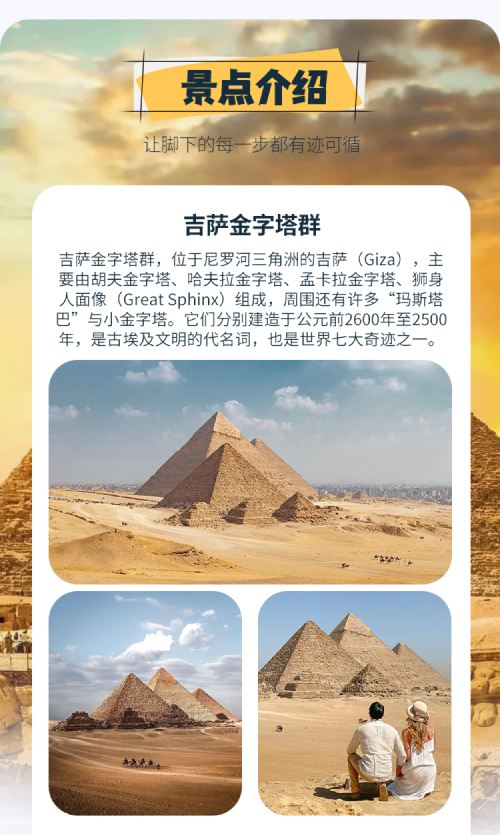 [One-tap check-in] The ancient and mysterious Egyptian pyramids stand tall in the desert, like a historical scroll spanning millennia, narrating tales of past glory and vicissitudes.