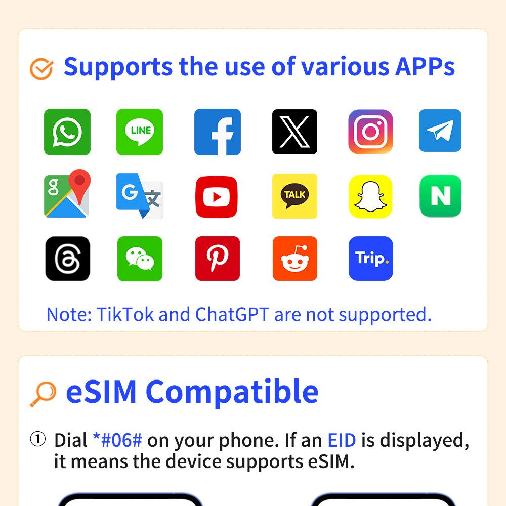 Device must support eSIM functionality: Dial *#06# on the dialing screen. If EID is shown, the device supports eSIM. If no EID is displayed, eSIM cannot be used.