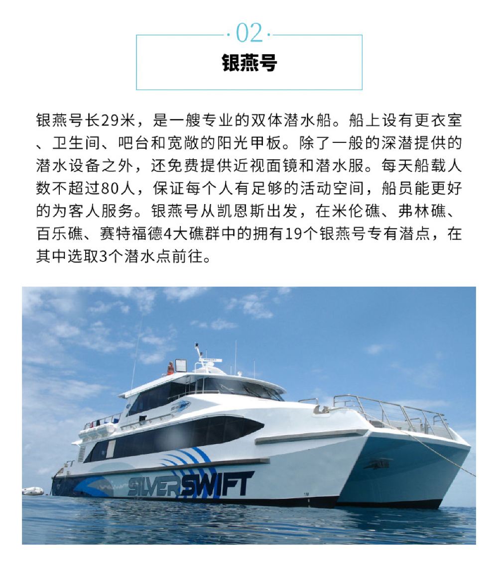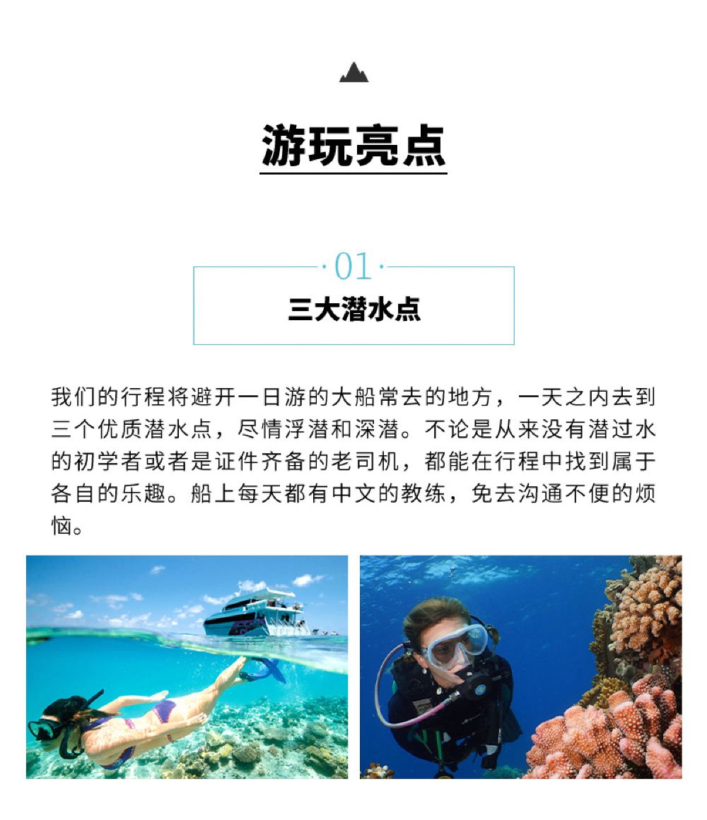 The boat includes nearsighted diving masks, wetsuits, hot water showers, and daily Chinese-speaking coaches, providing guided snorkeling.