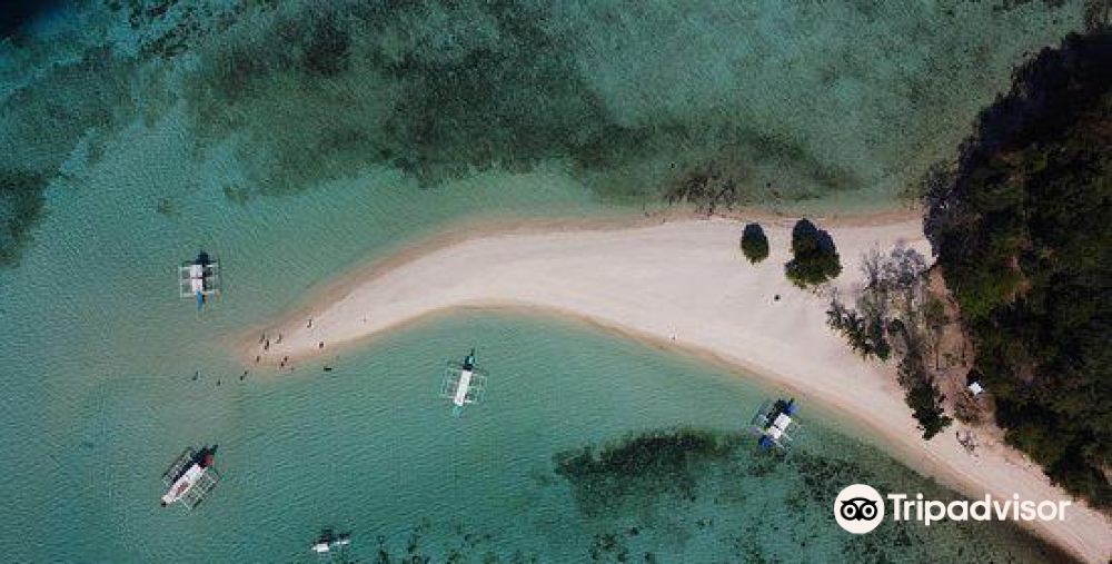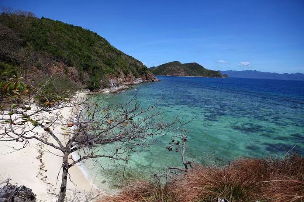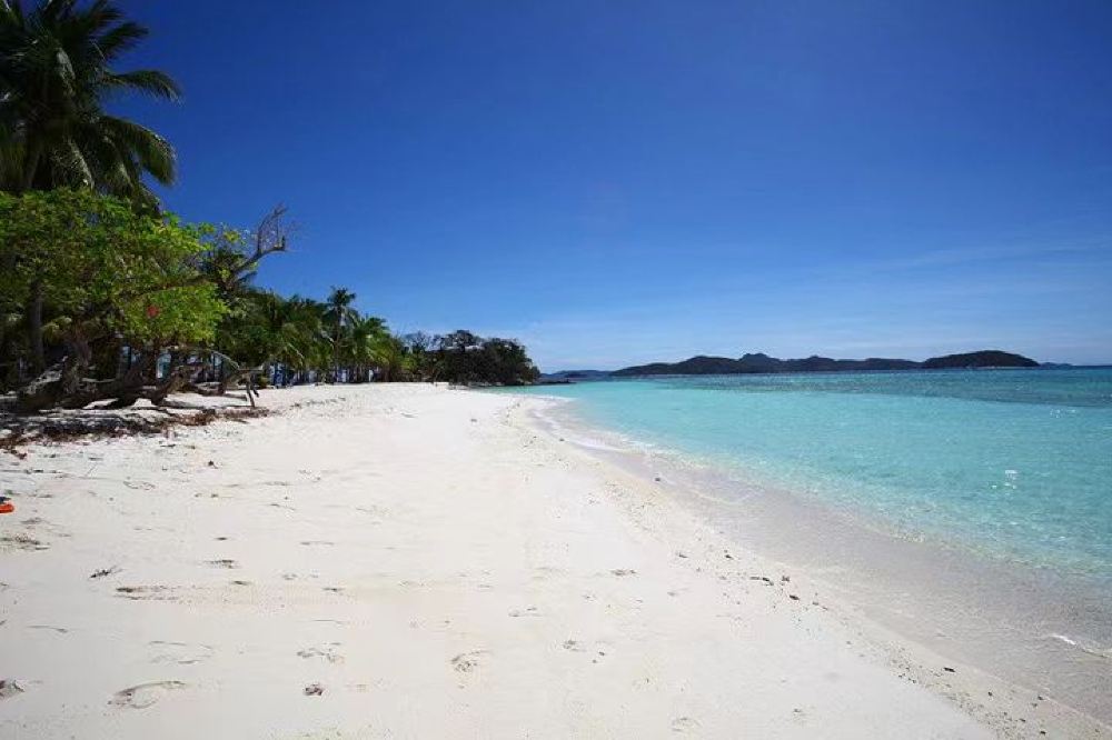 [Malcapuya Island] Known as the "Little Boracay," Malcapuya Island is famous for its powdery white sand that resembles flour. This private island is a narrow strip of land facing the inner sea with the open ocean at its back. One side features a symphony of seawater and reefs, while the other boasts pristine white sandy beaches. The stunning combination of blue skies, turquoise waters, and white sand makes it a perfect spot for photography and check-ins.
