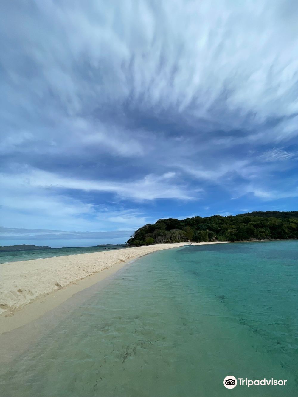 Ditaytayan Tail-end Beach, as the name suggests, is a long stretch of sand that resembles a trailing tail. Against the endless expanse of jelly-like blue sea, the white sand meanders like a ribbon floating on the water's surface, making it particularly suitable for aerial photography.