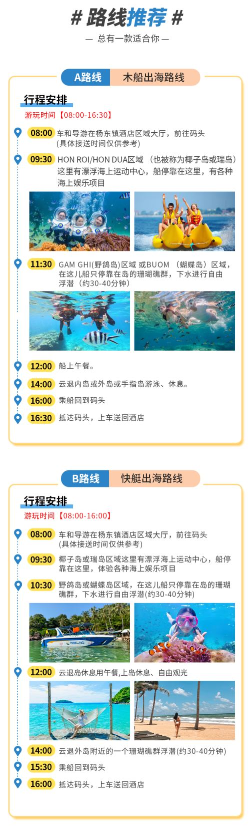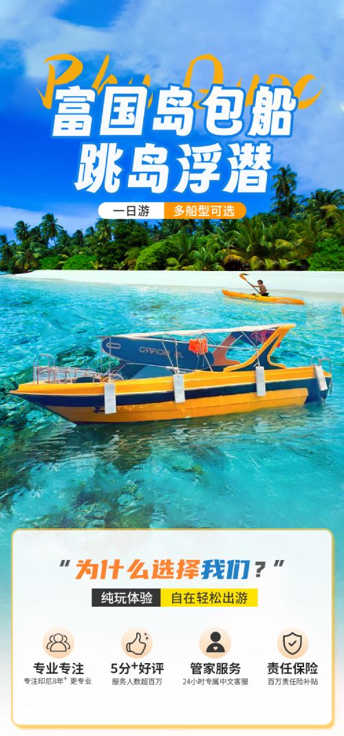 Island hopping tours available by wooden boat or speedboat to suit various needs (package titles specify speedboat or wooden boat, please check carefully!)