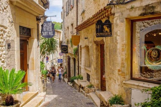 Visit one of France's most popular destinations: Saint-Paul-de-Vence. This magnificent village, dating back to the 11th century, is one of the artistic towns along the French Riviera in Southern France, beloved by artists and painters (Chagall, Picasso, Matisse), writers (Prévert, Pagnol), and celebrities (Signoret, Montand) as a holiday retreat. At the entrance of the town, next to the 17th-century washhouse, the Hotel La Colombe d'Or has hosted notable figures from our time and the past, including Henri Matisse, Roger Moore, and Tony Curtis.