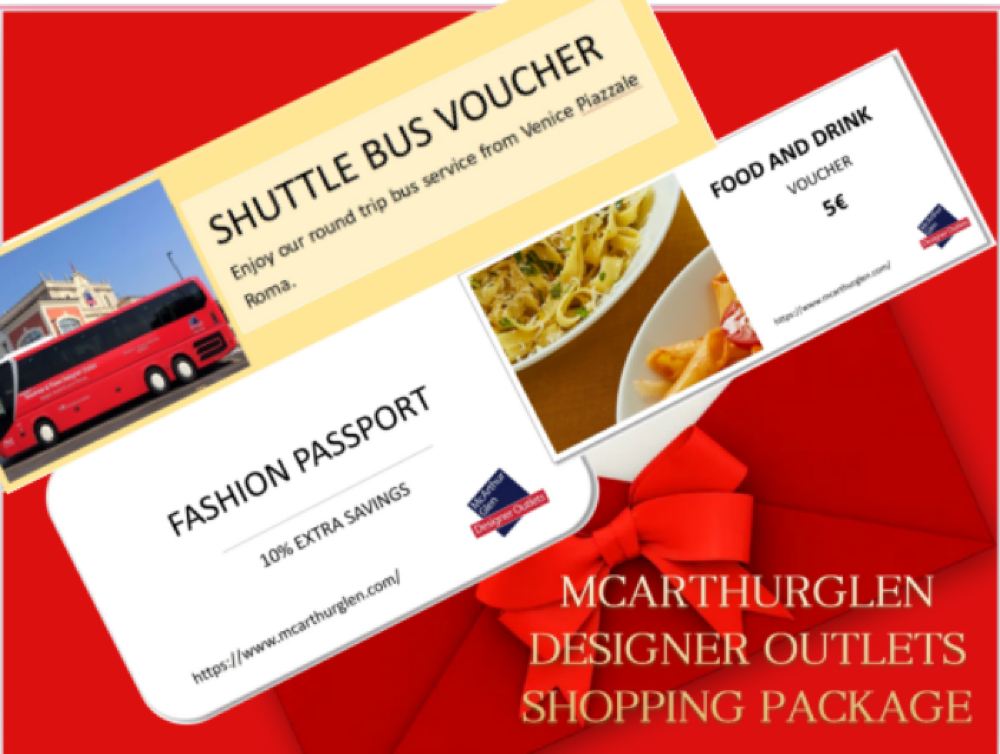 At Designer Outlet Noventa di Piave, most stores usually offer discounts between 70% and 35% all year round, and you can enjoy an additional 10% discount by using our shopping package!