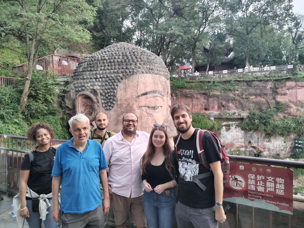 Arrive at Leshan. We recommend the *hiking route* to fully appreciate the scale and artistry of the Buddha. Walk along the cliff-side path, descend the famous "Nine-Bend Plank Walk", and stand at the feet of the 71-meter tall statue for a truly awe-inspiring experience.