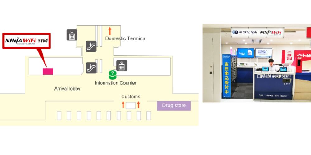 2F Arrivals Lobby-"Global WiFi x NINJA WiFi" Counter