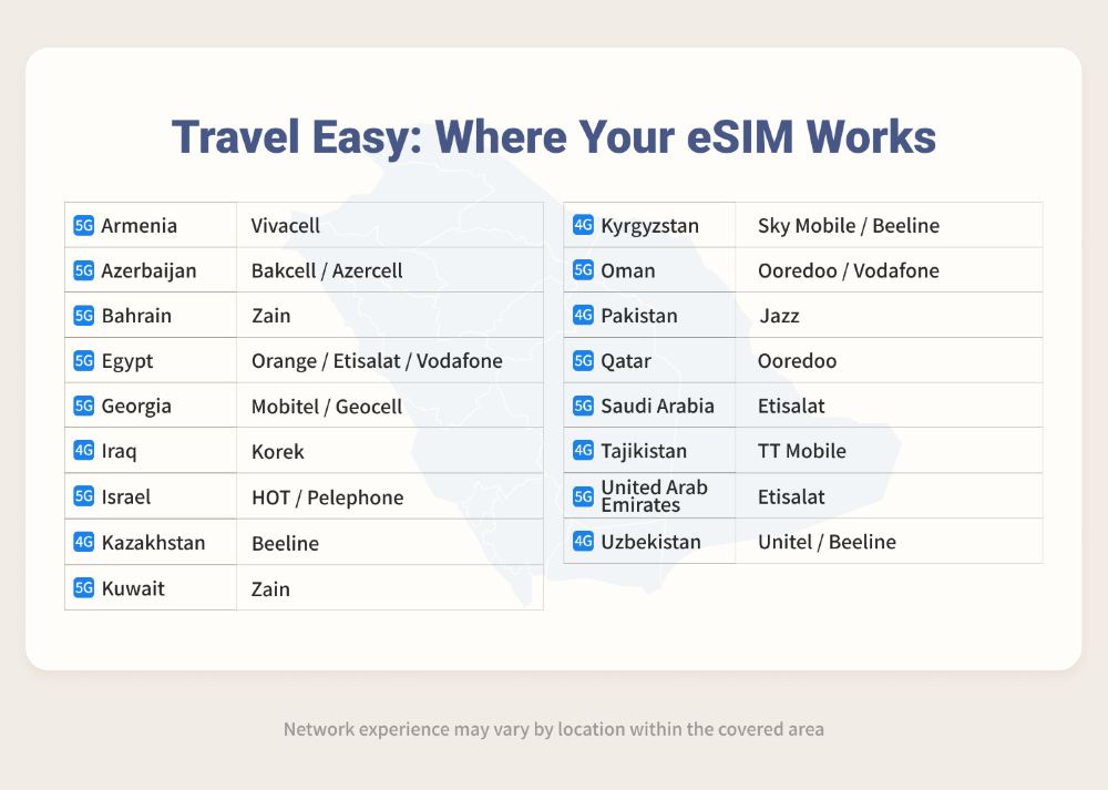 One eSIM, stay connected across multiple Middle Eastern destinations.
