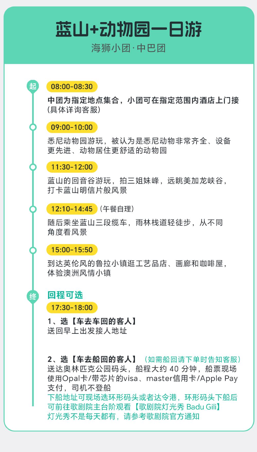 The Blue Mountains are beautiful, and my experience traveling with my two children on a group tour was excellent! The Mercedes was new, safe, and comfortable, and the music on board made the whole trip very pleasant and relaxing. I must mention our tour guide, Vincent, who was incredibly attentive, kind, and warm-hearted. My younger son got carsick on the bus, and they provided vomit bags and trash bags. When my older son forgot his phone, Vincent brought it to us at the pier. Thank you so much! 🙏