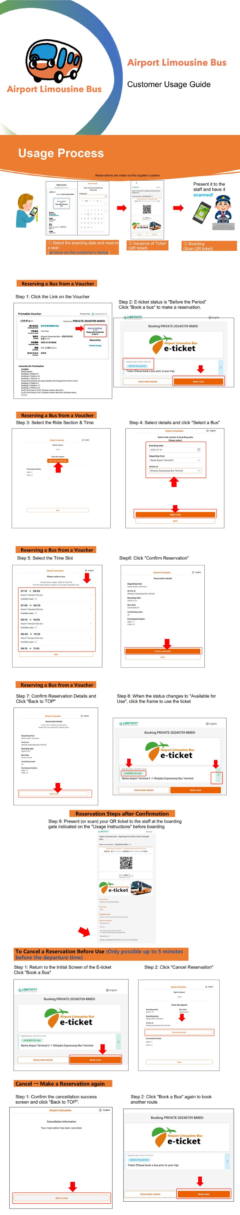 Please follow the instructions and complete the reservation procedure as much as possible 1 day before the boarding date. You can change the booking details 5 minutes before the bus departure time . You can cancel the reservation or apply for a refund 5 minutes before the reserved bus departure time, but you cannot cancel the reservation or apply for a refund after that.