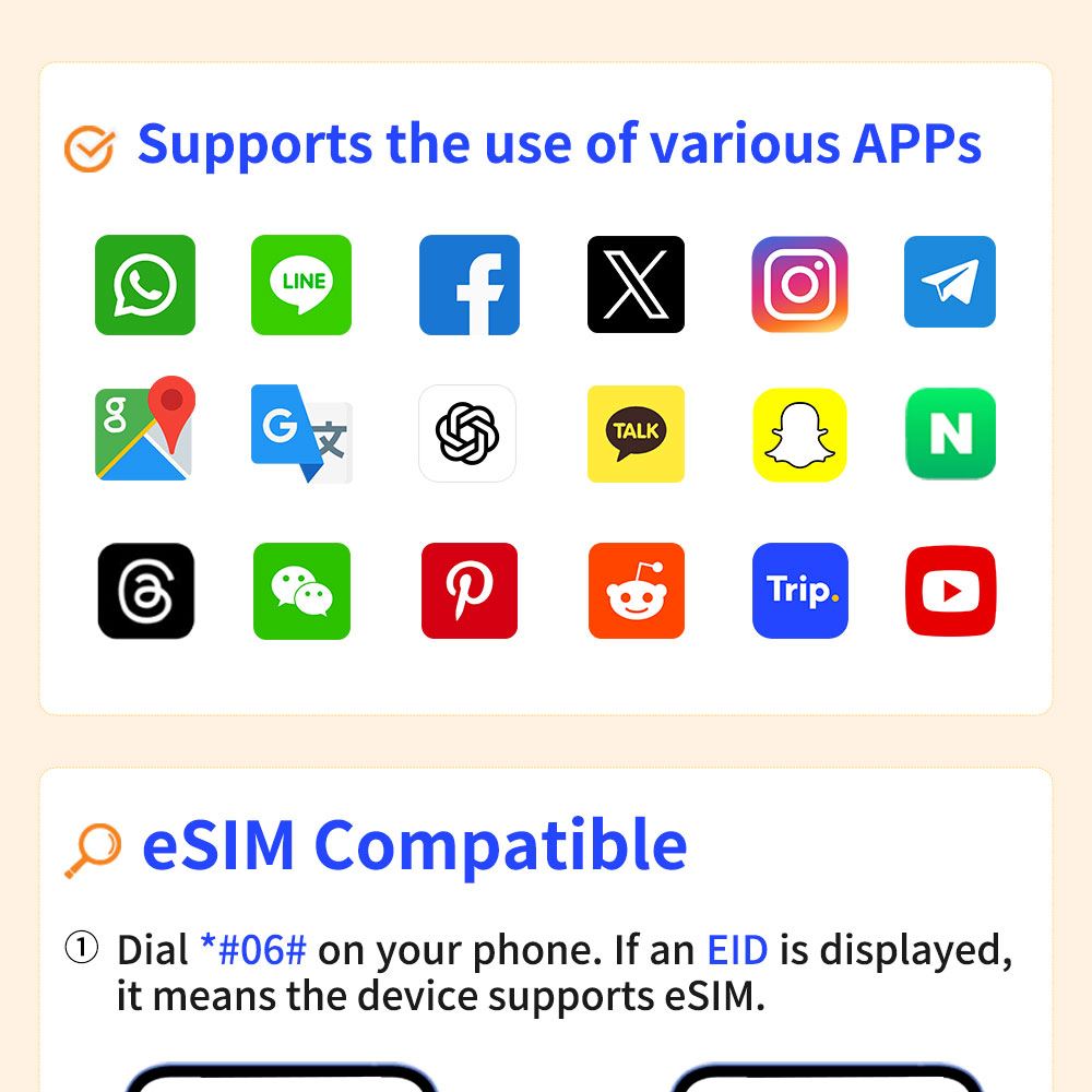 Device must support eSIM functionality: Dial *#06# on the dialing screen. If EID is shown, the device supports eSIM. If no EID is displayed, eSIM cannot be used.