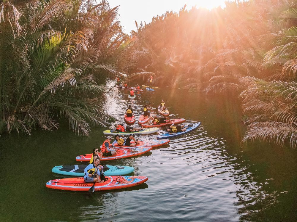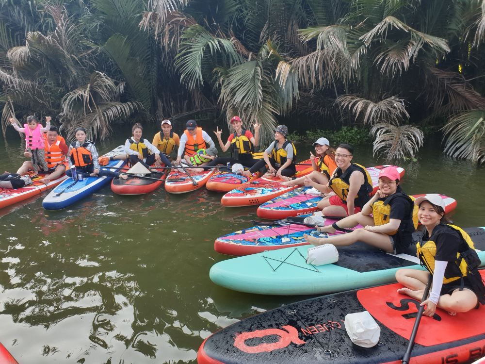 SUP paddling is no longer a strange activity for Saigonese. Every afternoon, if you take a stroll along the Tac River, you'll catch glimpses of paddleboards gliding gently on the water. One of the most beloved SUP routes is paddling through coconut forests and watching the sunset from the water. Professional guides will teach you how to balance on the board and stay by your side to assist you throughout the journey.