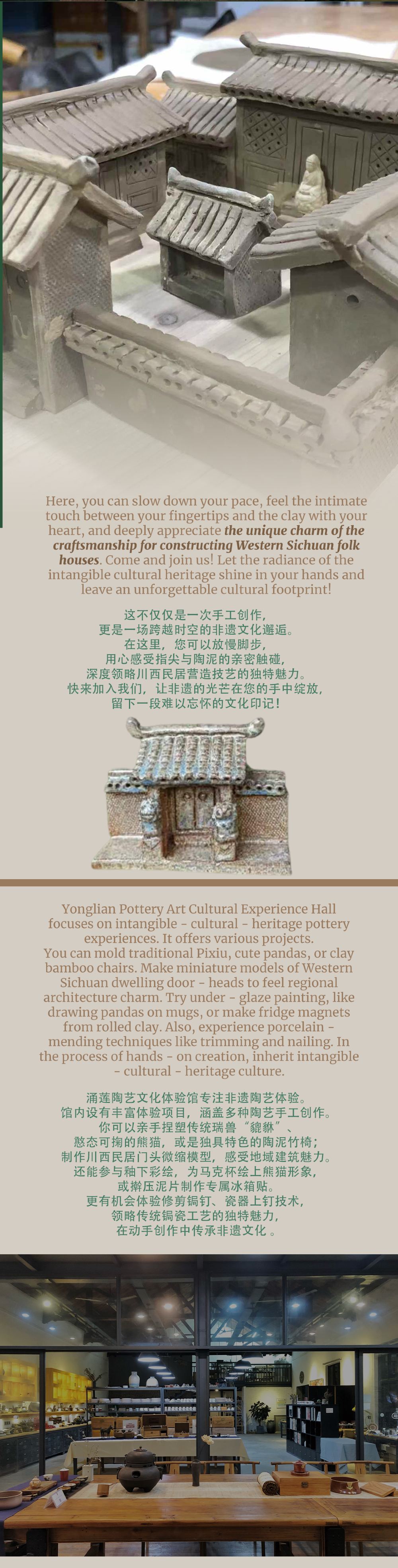 Travel through time and touch the pulse of Chengdu's thousand-year-old intangible cultural heritage! Yonglian Ceramics Cultural Experience Hall invites you to start the extraordinary journey of [Making Door Models of Western Sichuan Folk Houses].