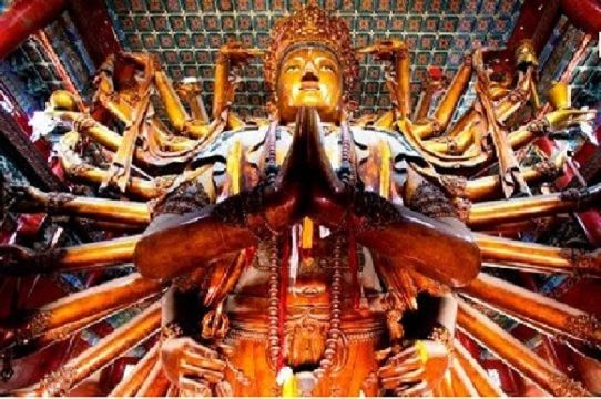 ▲ Puning Temple is a significant Buddhist activity site in northern China, where monks gather and incense thrives. The temple combines Han and Xizang architectural styles, with the front section featuring traditional Han Buddhist temple characteristics, while the rear section is built in the Xizang style, modeled after the Samye Monastery in Xizang. These two distinct architectural styles blend seamlessly. Step into Puning Temple, a sacred********************site in the north with thriving incense and hundreds of resident monks. Pay homage to the gold-lacquered wooden Buddha statue—"Thousand-Armed and Thousand-Eyed Avalokiteshvara"—recorded in the Guinness World Records. Immerse yourself in the rich atmosphere of Tibetan Buddhism and appreciate the fusion of Han and Xizang Buddhist architectural styles, as well as the grandeur of this imperial temple.