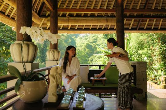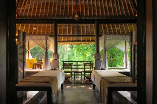 Experience ultimate relaxation in nature at Maya Resort Ubud Spa, where serenity meets luxury. Nestled in a breathtaking setting with panoramic views of lush rainforests, the spa creates the perfect atmosphere for peace and tranquility. A scenic wooden pathway winds along the Petanu River, guiding you to the reception area before leading through vibrant foliage to private treatment pavilions. Each pavilion is thoughtfully designed with comfortable day beds to ensure the utmost relaxation. Immerse yourself in this peaceful oasis, where every detail is crafted to rejuvenate your body and soul.