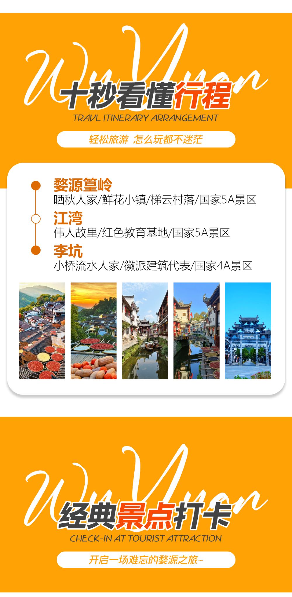 Recommended regular routes for Wuyuan and Sanqing Mountain are as follows: (all-inclusive pure play tours, Kanghui's products guarantee excellence)