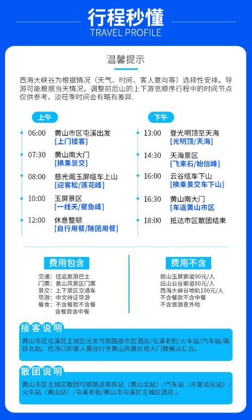 Multiple packages available: Includes Huangshan admission ticket + round-trip shuttle for 38 CNY + exclusive small group of 16 + guided tour with accompanying guide throughout the journey!