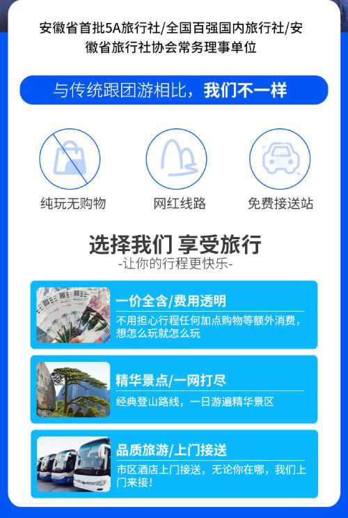 100% pure play with no shopping stops, no store visits, with pickup from downtown hotels and drop-off at Huangshan North Station