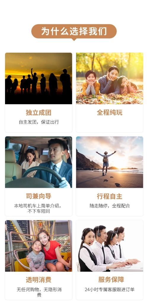 Recommended attractions and routes, actively listening to customer requests throughout, VIP service, pure sightseeing with no shopping, family-friendly tours, family vacations, friends & relatives trips, relaxed leisure